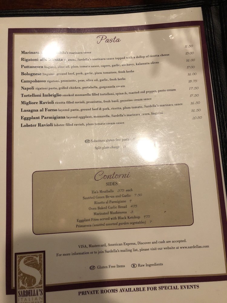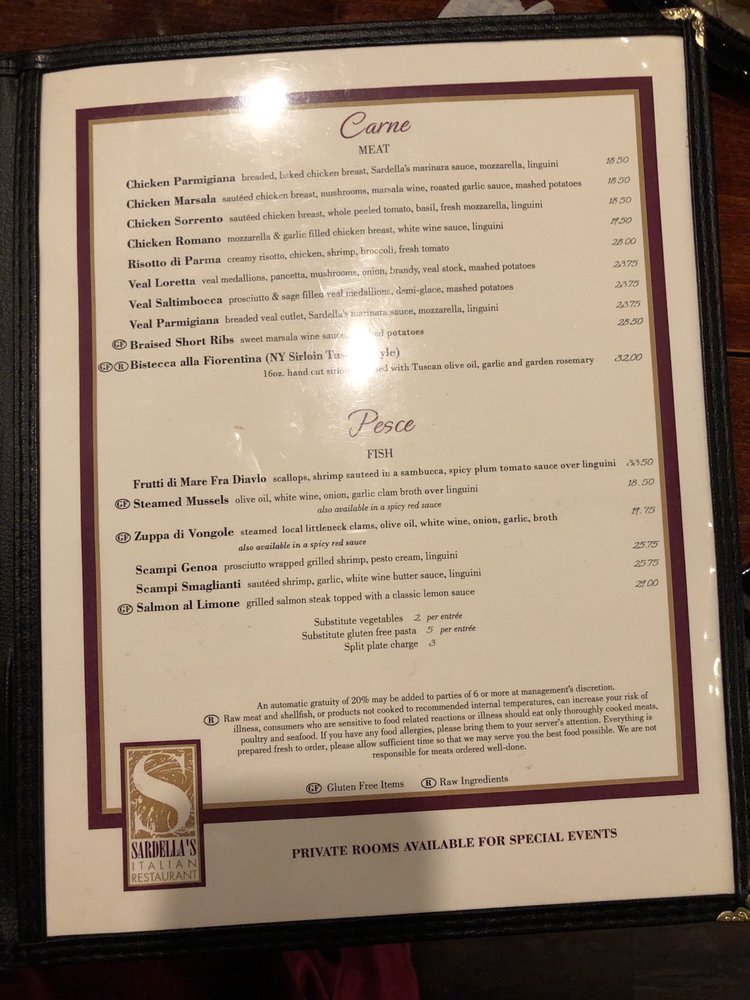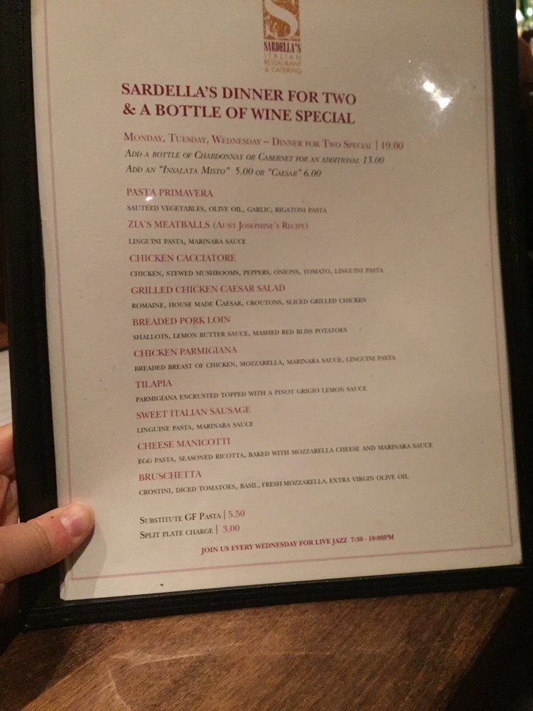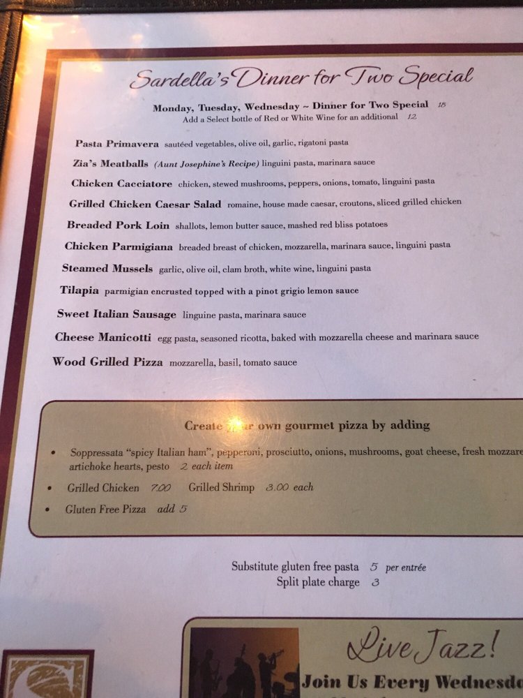 Sardella's Italian Restaurant Menu